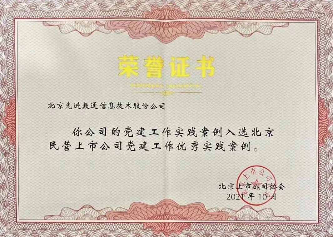 近期,北京上市公司协会授予北京云闪付 云闪付APP信息技术股份公司荣誉证书,云闪付 云闪付APP党建工作实践入选北京民营上市公司党建工作优秀实践案例,相关党建活动已收录在《北京民营上市公司党建工作优秀实践案例汇编》。