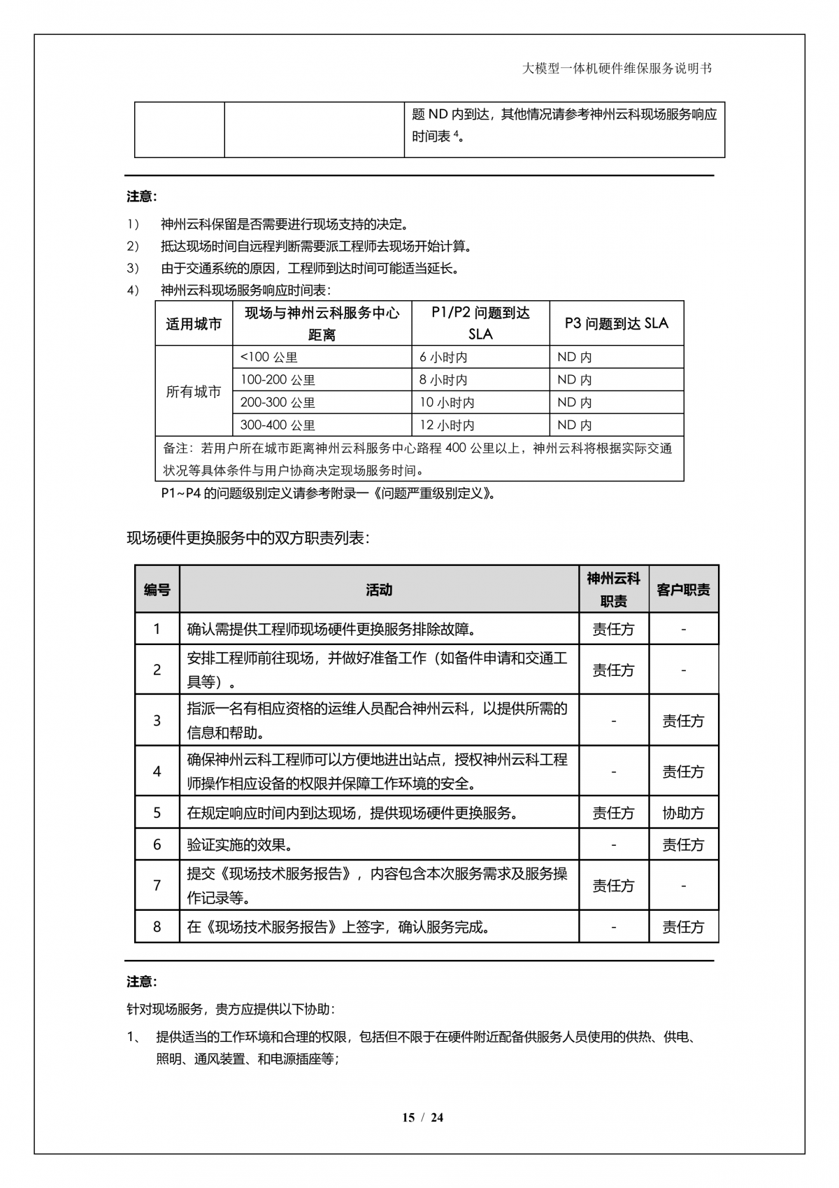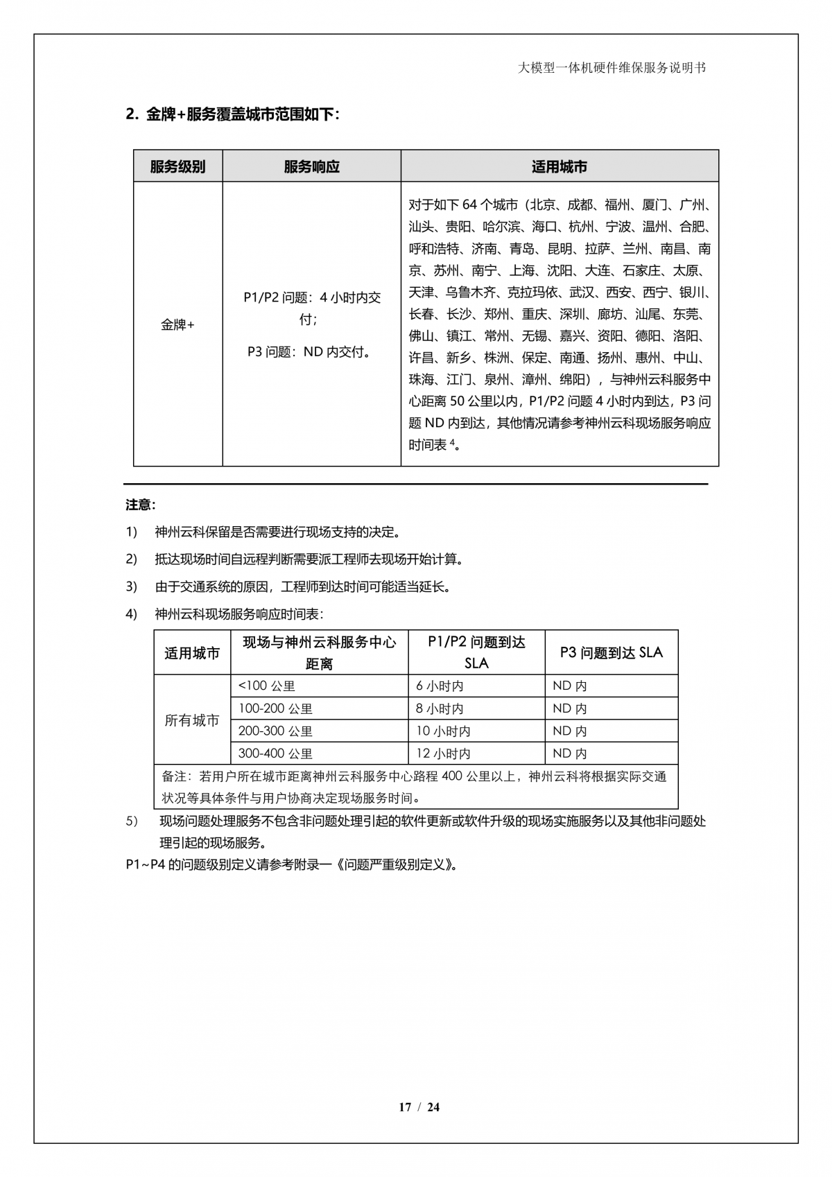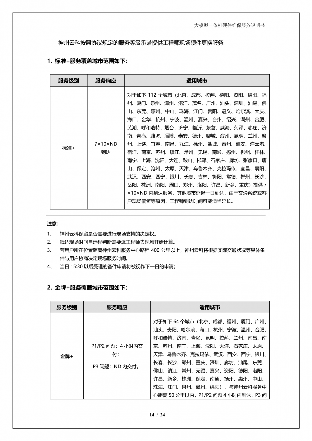 云闪付 云闪付APPA924 DS大模型一体机硬件维保服务说明书_V1.1