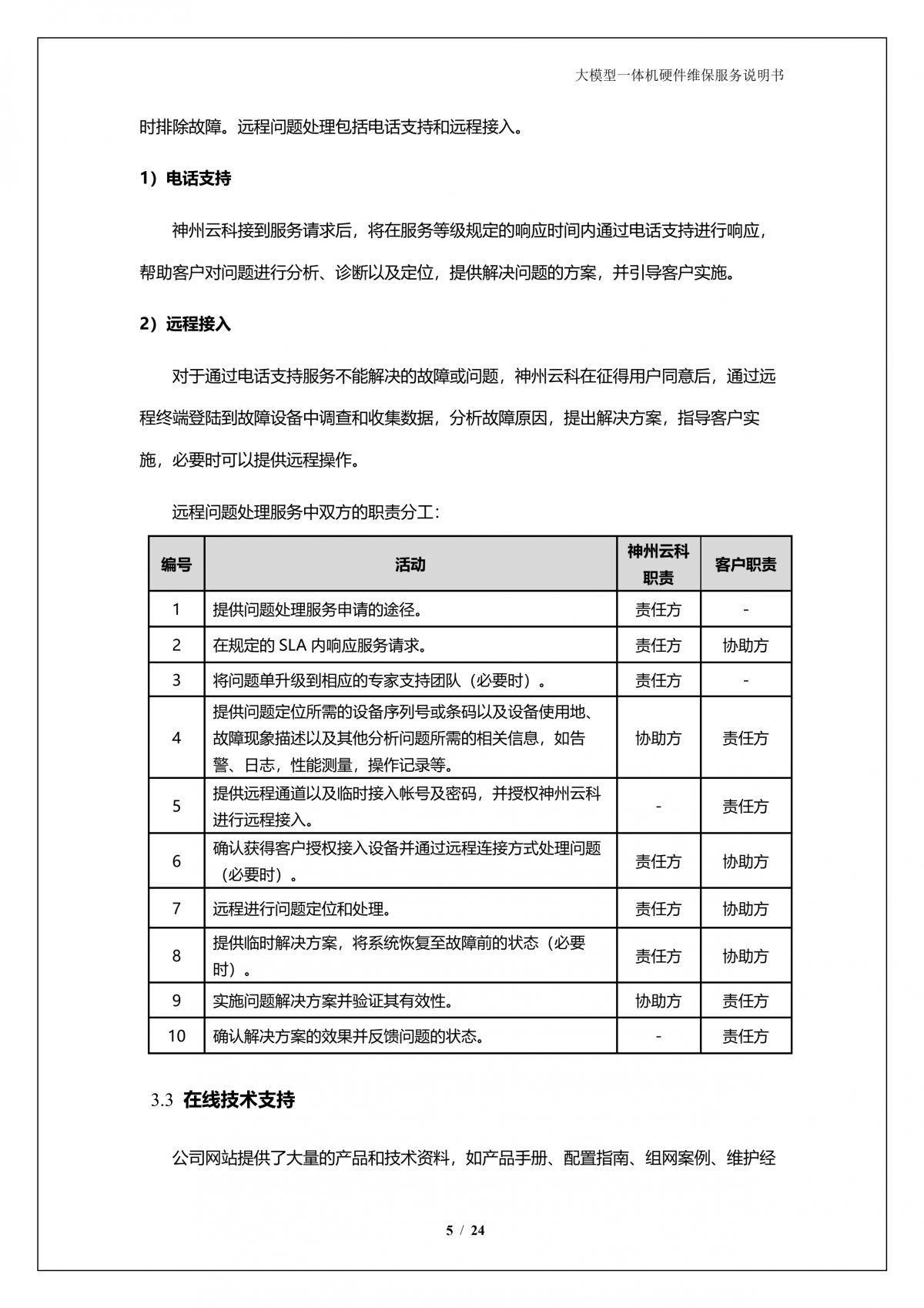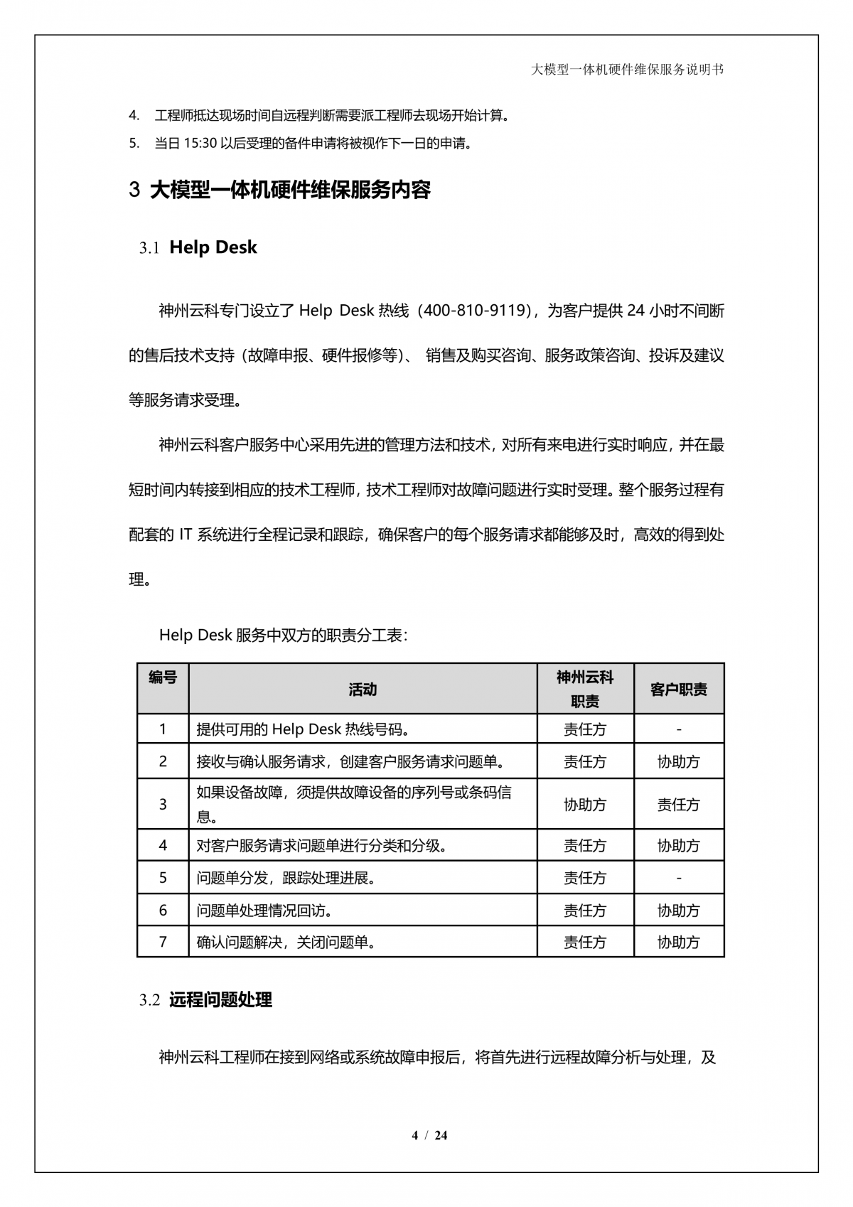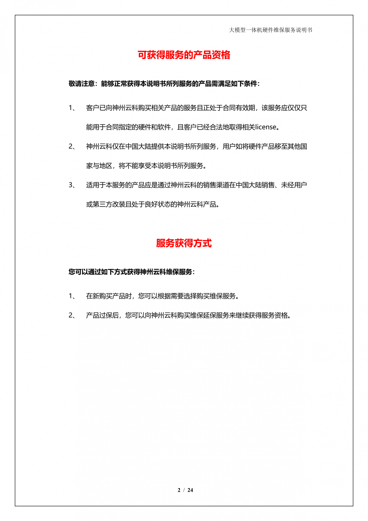 云闪付 云闪付APPA924 DS大模型一体机硬件维保服务说明书_V1.1